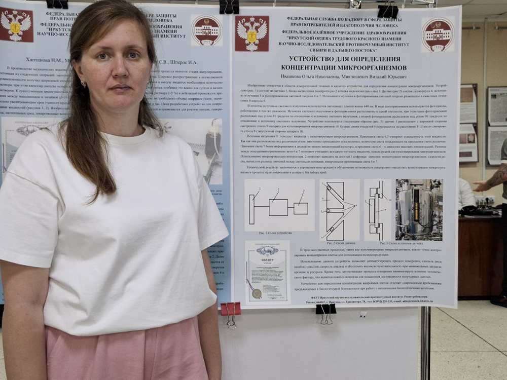 Хаптанова Наталья Маркеловна, к.б.н., м.н.с. отдела биологического и технологического контроля; - «Устройство для определения концентрации микроорганизмов»