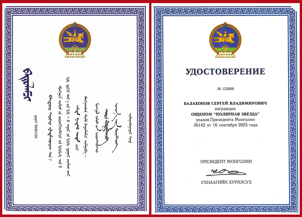 17 сентября 2025 года на Международном симпозиуме «Yersinia 15TH» в г. Улан-Батор за большой вклад и личное участие в обеспечении эпидемиологического благополучия населения Монголии по чуме и другим особо опасным инфекциям директор ФКУЗ Иркутский научно-исследовательский противочумный институт Роспотребнадзора, доктор медицинских наук, профессор Сергей Владимирович Балахонов указом Президента Монголии №142 от 16 сентября 2025 года награжден высокой государственной наградой Монголии орденом «Полярная звезда».